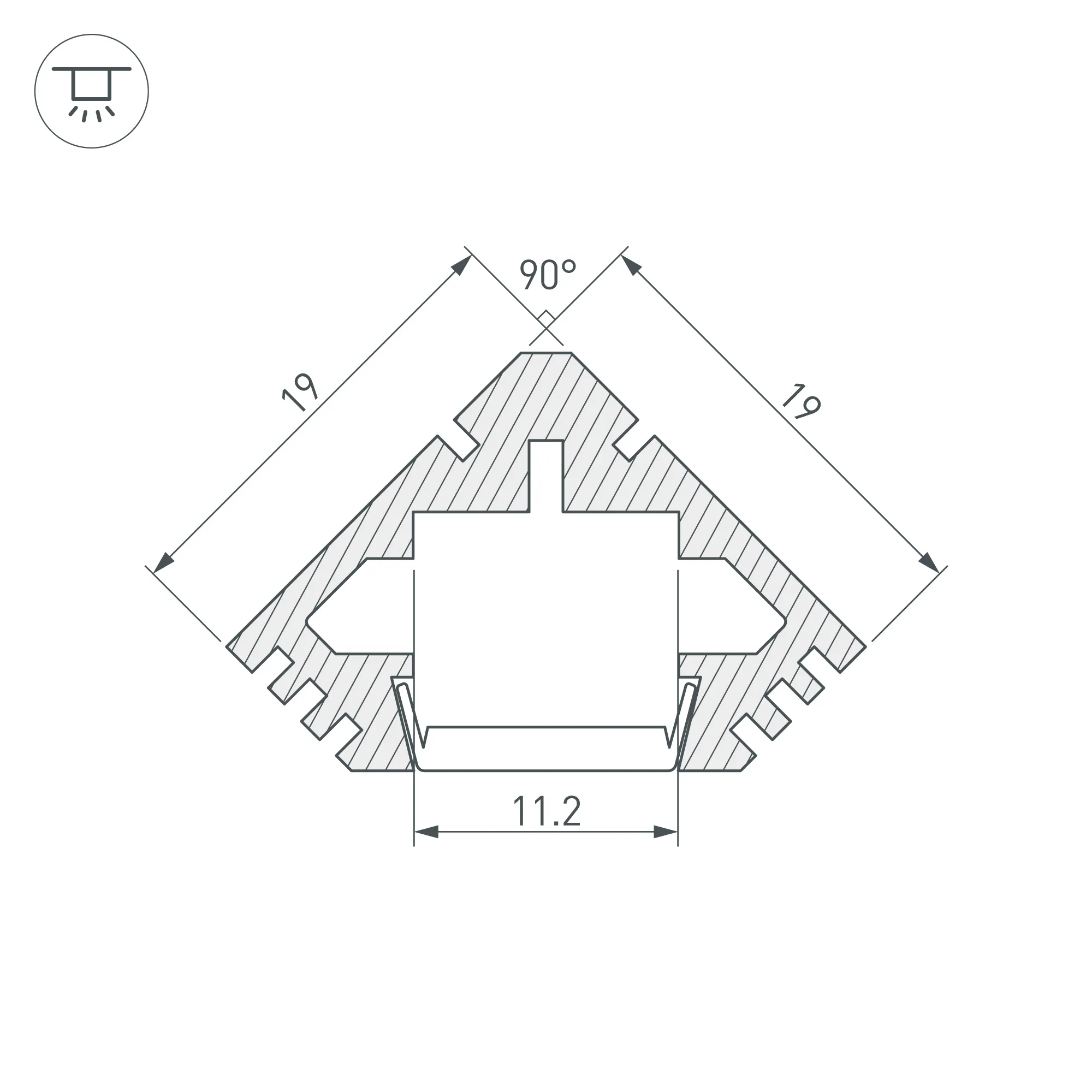 Алюминиевый угловой профиль для светодиодных лент и линеек. Габаритные размеры (L×W×H): 2000x19x19 мм. Ширина площадки для ленты 11,2 мм. Экраны, заглушки и другие аксессуары приобретаются отдельно. Цена за 1 метр.