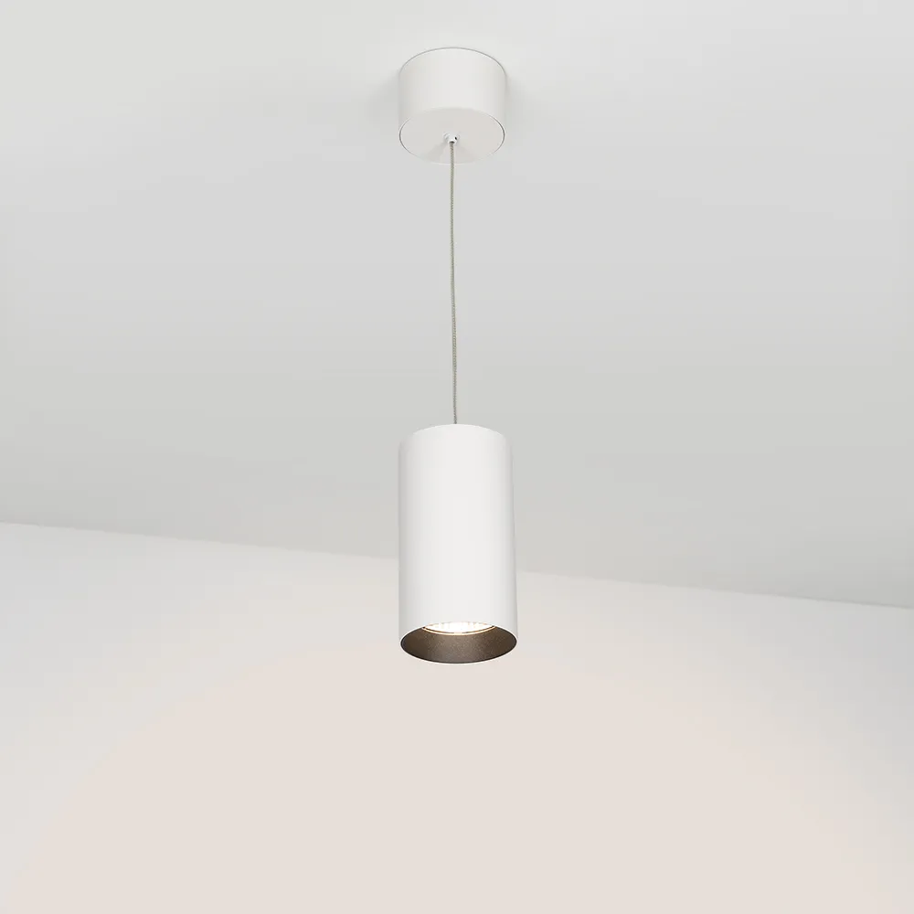 Подвесной светильник 15Вт, белый круглый корпус, черная вставка, металл. Цвет ТЕПЛЫЙ БЕЛЫЙ 3000K, св.поток 1100лм, CRI(Ra)>80, угол 40°. Размер Ø85x155мм. Встроенный драйвер PRI:220-240VAC, SEC:DC 350mA 23-36V 15Вт.