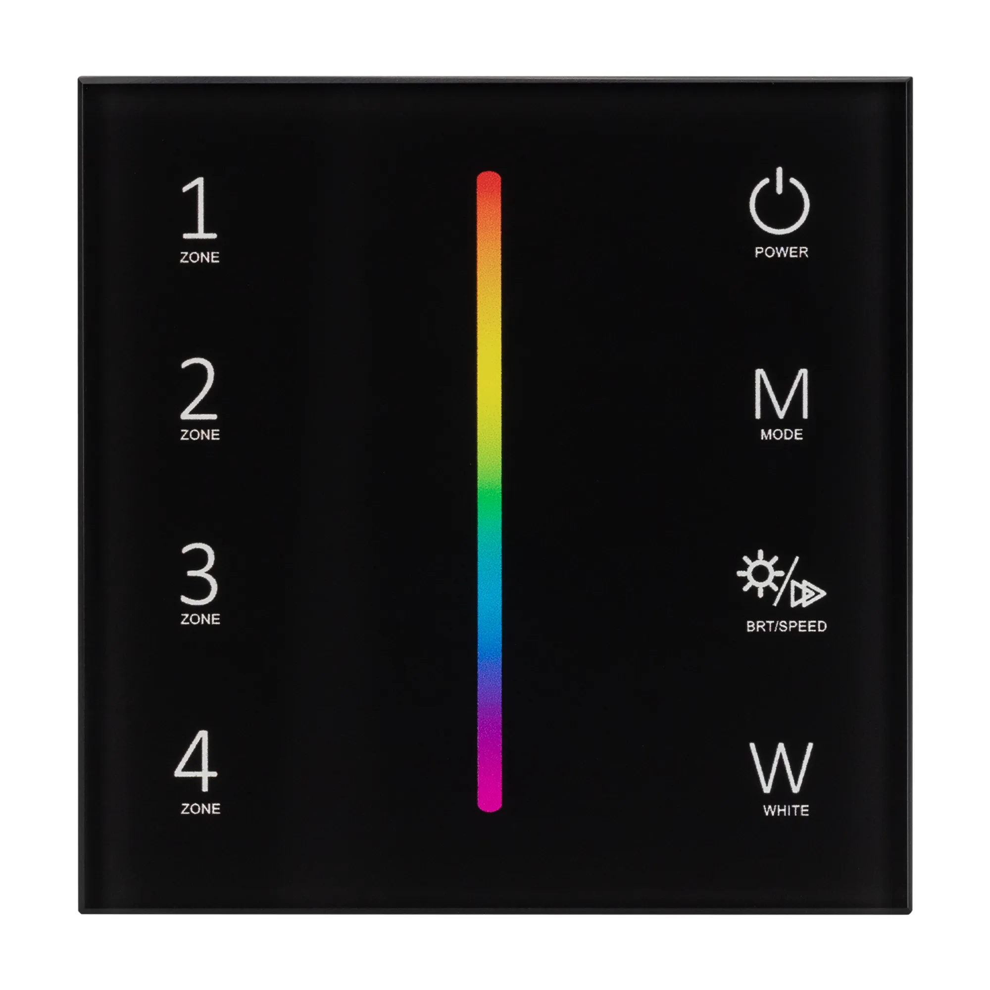 Встраиваемая сенсорная стеклянная панель 2.4 ГГц, цвет чёрный. Для управления RGBW источниками света с помощью сенсорной полосы. Питание/рабочее напряжение AC 100-240V, 4 зоны управления. Функция управления DMX512 устройствами. Габариты 86х86х35 мм. Панель совместима с контроллерами и пультами серии SMART.