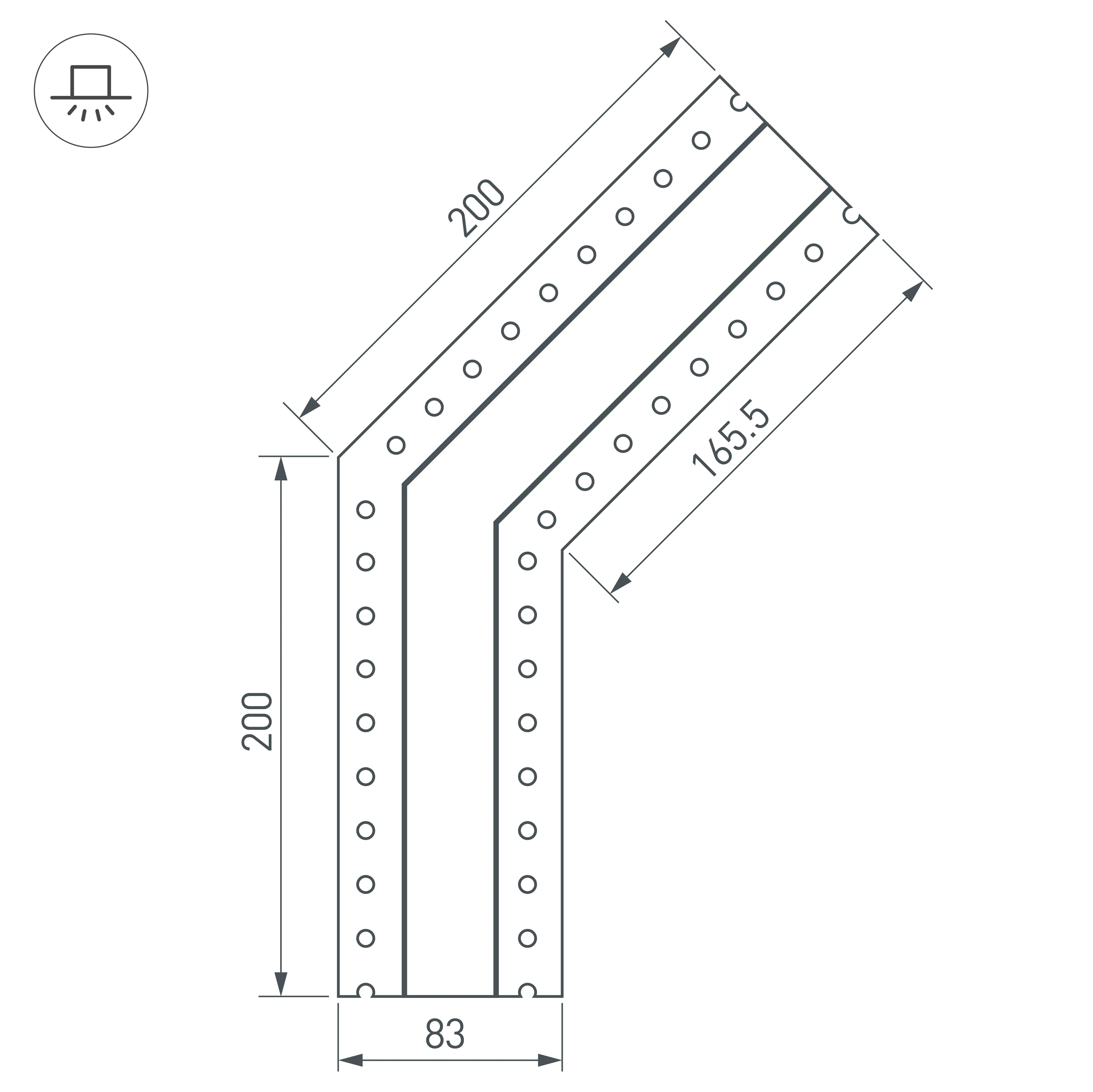 Угловой соединитель в сборе для профиля SL-LINIA32-FANTOM. Угол 135°. В комплекте угол с экраном, соединители, винты, шестигранный ключ.