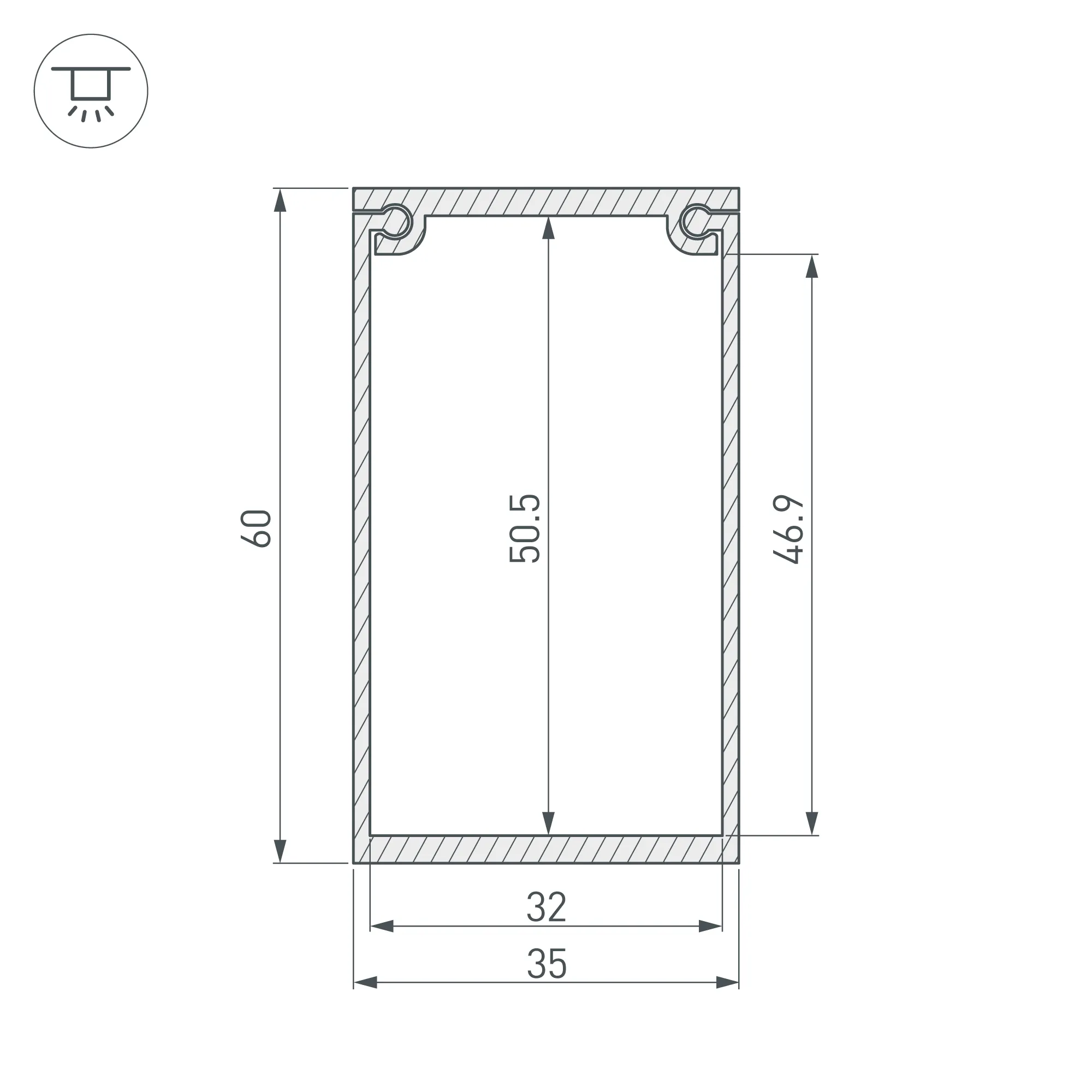 Короб для размещения блока питания для подвесного монтажа профиля. Крепится к потолку. В комплекте: Короб-1шт., заглушки-2шт.