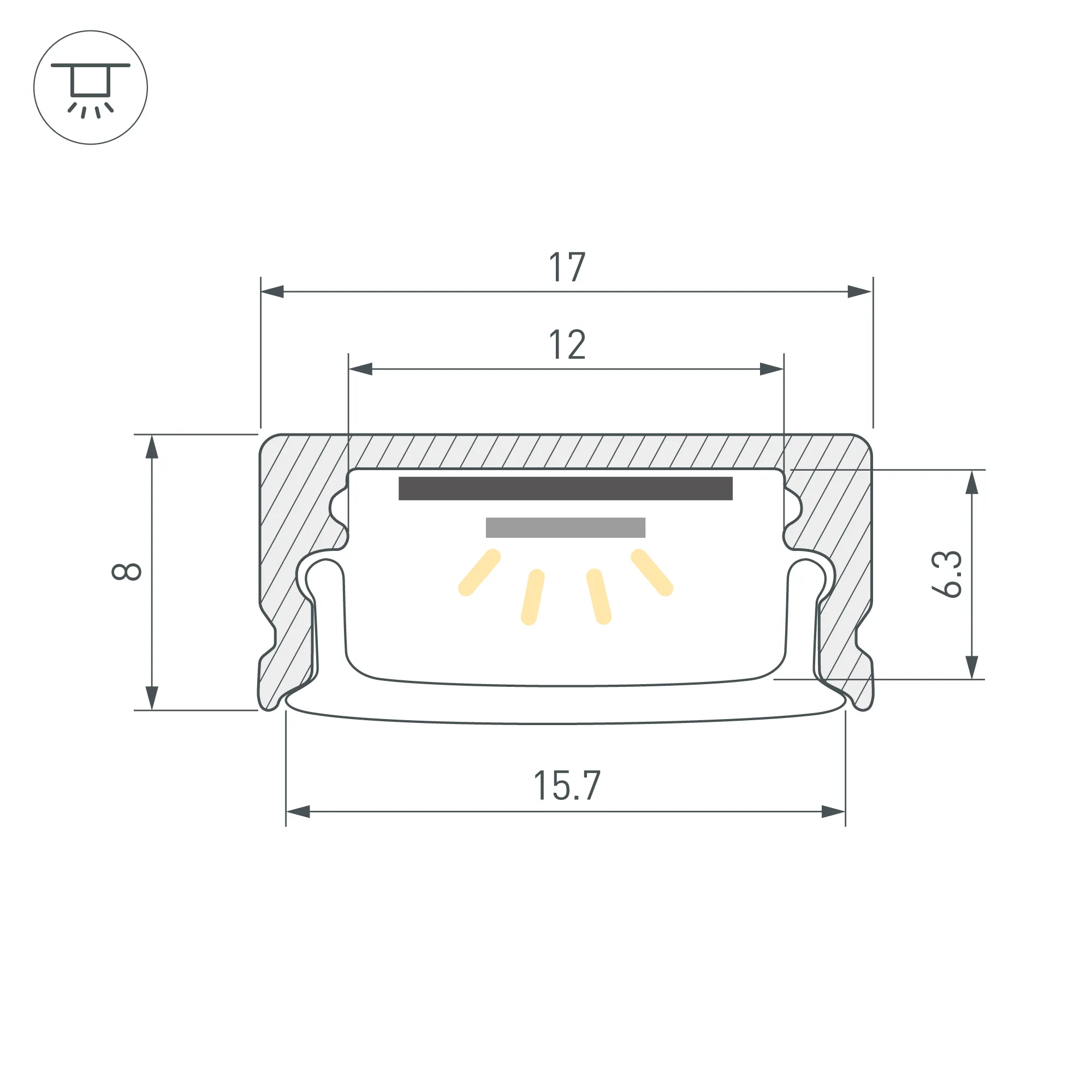 Алюминиевый накладной профиль для светодиодных лент и линеек. Цвет - белый RAL9003 (порошковая окраска). Габаритные размеры (L×W×H): 2000x17x8 мм. Ширина площадки для ленты 12 мм. Экраны, заглушки и другие аксессуары приобретаются отдельно. Цена за 1 метр.