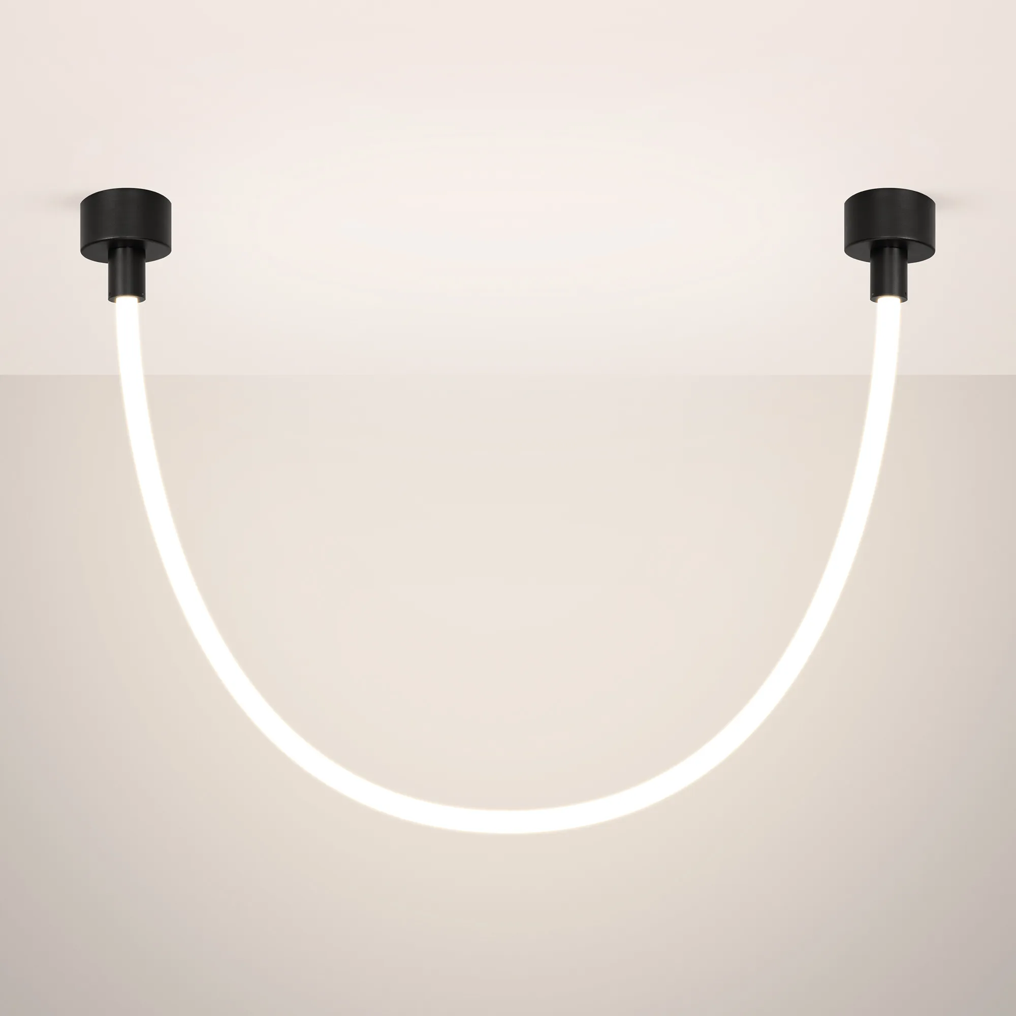 Подвесной светильник. Мощность 18 Вт, св. поток 980 лм, 54 лм/Вт, тёплый 3000 K, CRI>90, угол 360°, напряжение питания 230 В. Чёрный круглый корпус из стали, силиконовая герметичная лента, степень защиты IP20. Размер: общая высота чаши 85 мм, высота чаши без вывода под неон 50 мм, диаметр вывода под неон 35 мм, диаметр чаши 130 мм, диаметр силиконовой герметичной ленты 18 мм, длина силиконовой герметичной ленты 1200 мм. Монтаж накладной. Блок питания 24 В, 750 мА, пульсация <5%.