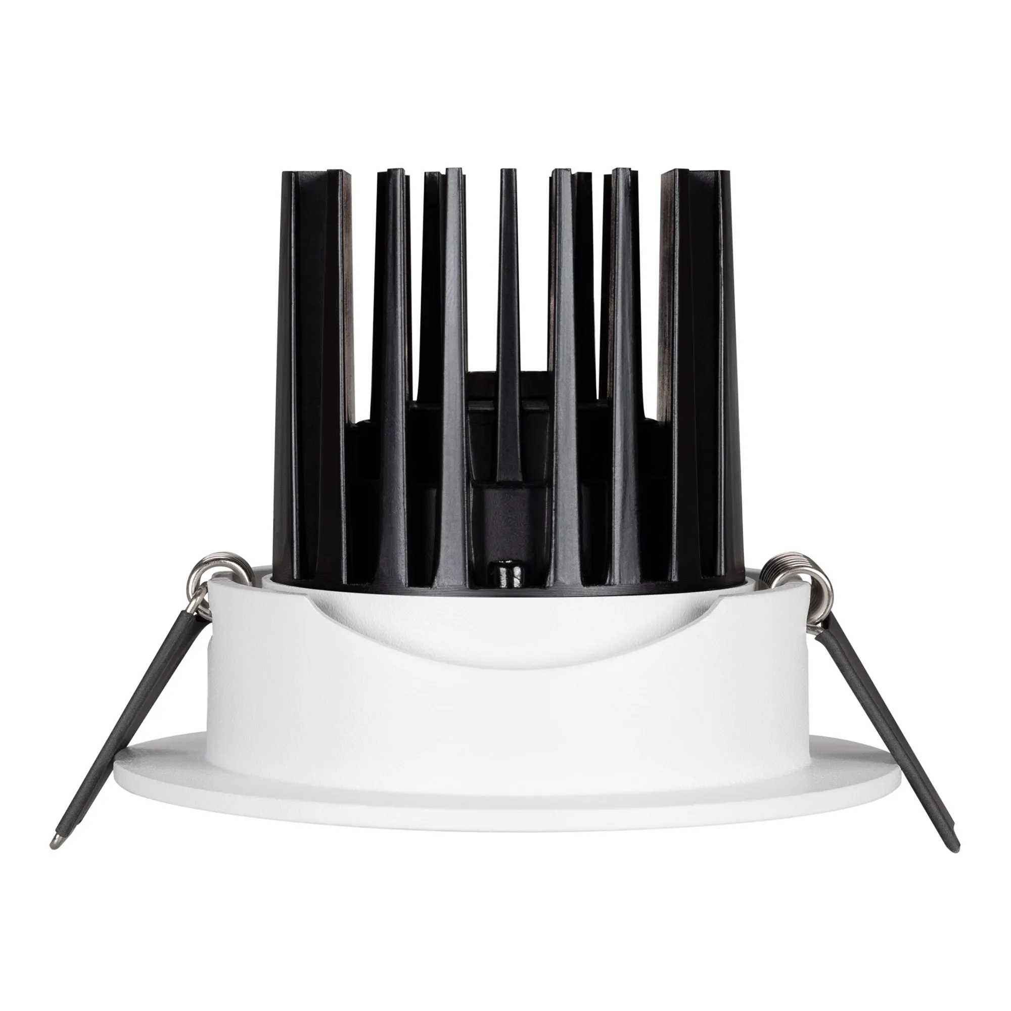Встраиваемый поворотный светильник даунлайт. Мощность 10 Вт, св. поток 750 лм, 75 лм/Вт, теплый 3000 K, CRI>90, угол 60°, напряжение питания 230 В. Белый круглый корпус из алюминия, экран PMMA, степень защиты IP54. Размер: диаметр 94 мм, высота 75 мм. Монтаж встраиваемый, установочное отверстие: диаметр 77 мм. Драйвер IP54, 20-40 В, 250 мА, пульсация <1%.